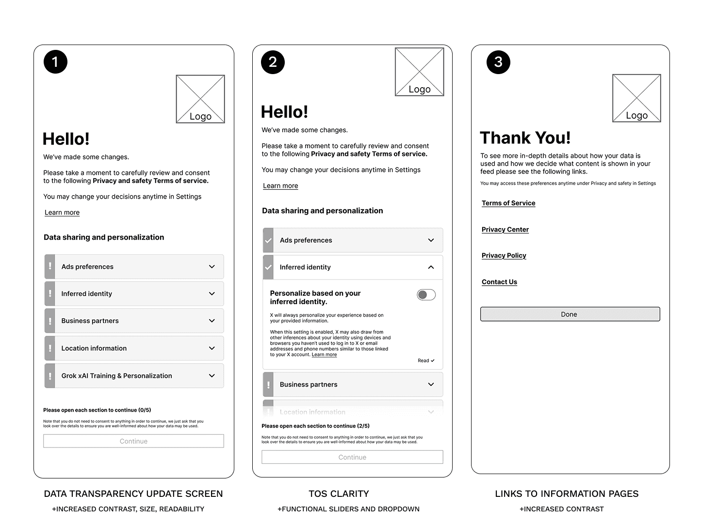 Increased visibility of Privacy/TOS settings so users are more informed and empowered with their data.