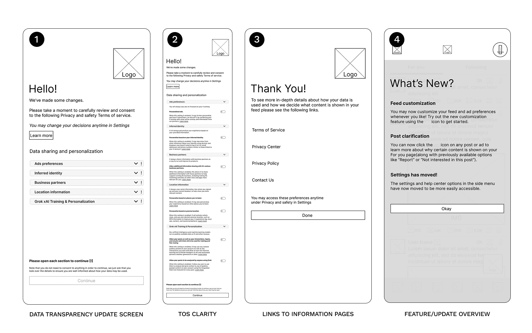As part of a case study, new usability features and changes are proposed in an interactive Figma prototype for the application X (formerly known as Twitter). These changes aim to empower the user in their experience using the platform. The hypothetical new features cover sentiments expressed through primary and secondary research conducted; revealing insights into user concerns regarding AI training, data collection, and feed algorithms.